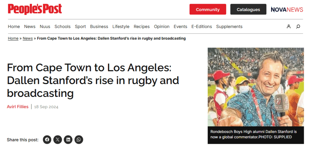 Dallen Stanford’s rise from international player to respected play-by-play broadcaster has been showcased in numerous media outlets, illustrating both his personal evolution and his impact on the rugby world.